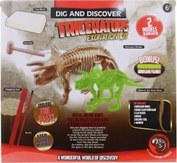 Spremenite dnevno sobo v paleontološko najdišče. Otroci najprej previdno izkopljejo dele, nato sestavijo okostje triceratopsa iz 10 delov, zatem pa uživajo v magiji s figurico, ki sveti v temi. Set razvija fino motoriko, potrpežljivost in zanimanje za prazgodovino.