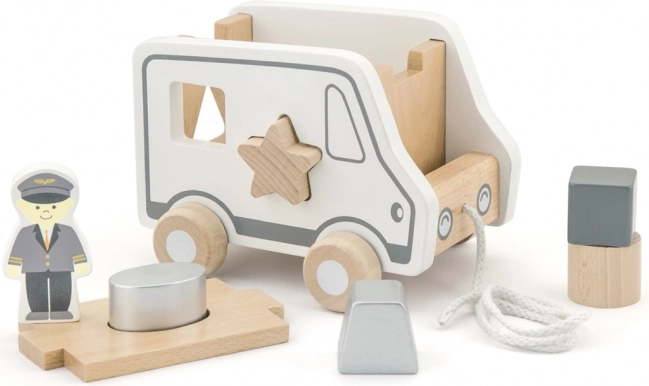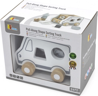 Ta lesena vlečna igrača v obliki tovornega avtomobila združuje dve priljubljeni aktivnosti – vlečenje na vrvici in vstavljanje oblik. Otroci razvijajo prepoznavanje oblik in prostorsko zaznavo, hkrati pa uživajo v gibanju in domišljijski igri s simpatičnim avtomobilčkom.