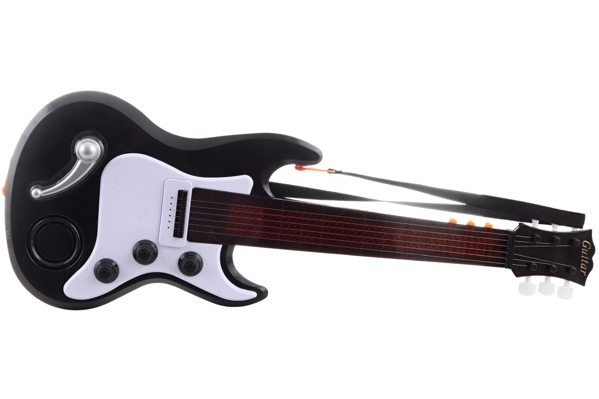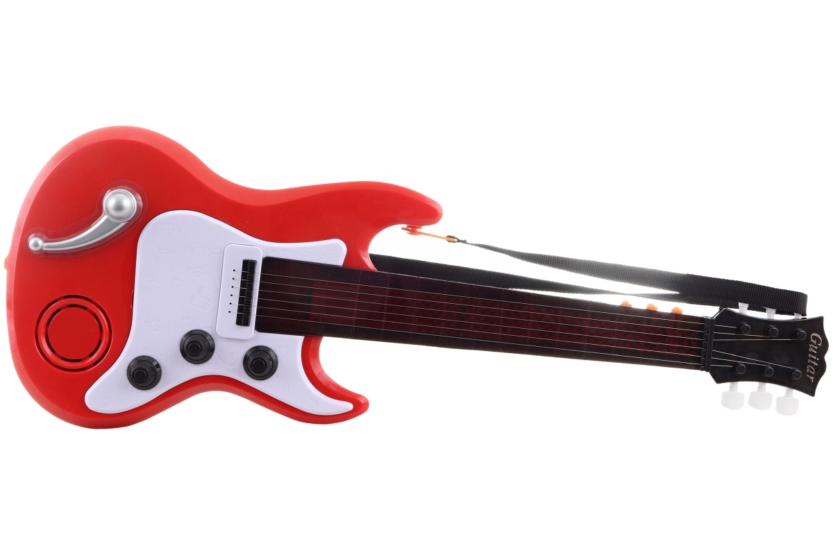 Ta elektronska otroška kitara je odlična izbira za prve glasbene korake. Zaradi kompaktne dolžine približno 55 cm dobro leži v majhnih rokah in spodbuja razvoj ritma, sluha ter ustvarjalnosti. Napajanje s 3× AA baterijami (niso priložene) omogoča igranje kadarkoli in kjerkoli, brez potrebe po priklopu na vtičnico.