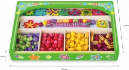 Varne lesene perlice so lahke za prijem in primerne za male ustvarjalce od 3 let. Set razvija fino motoriko, potrpežljivost in barvno zaznavo, obenem pa je odlična darilna izbira za male ljubitelje ustvarjanja in igrač iz naravnih materialov.