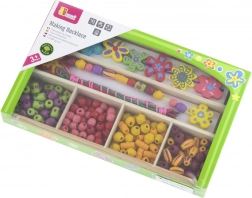 Ta leseni set perlic prinaša otrokom ure zabave pri ustvarjanju izvirnih ogrlic in zapestnic. V škatlici najdete pisane perlice različnih oblik in velikosti, vključno s cvetličnimi okraski, ter vrvice za enostavno nizanje. Zahvaljujoč preglednim predelkom je izbira perlic preprosta, ustvarjanje pa naravno spodbuja osredotočenost in kreativno izražanje.