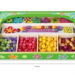 Razdeljeni predelki ohranjajo perlice pregledno urejene, zato otroci zlahka najdejo barvo in obliko, ki jo potrebujejo.