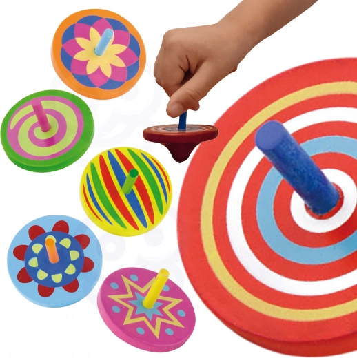 Barvaste lesene vrtavke VIGA pritegnejo vsak otroka med igro. Ob vrtenju vrtavke ustvarjajo zanimive vzorce, ki so otrokom všeč.