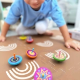Vsaka vrtavka prinaša edinstven sklop barv in vzorcev, ki ob vrtenju ustvarjajo privlačne vizualne učinke.
