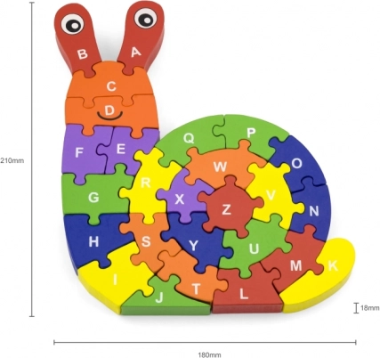Sestavite tega barvitega polža, vsak njegov košček je označen s črko abecede. Ta zabavna in učna sestavljanka ne le podpira učenje črk, temveč tudi izboljšuje fino motoriko in prostorsko orientacijo.
