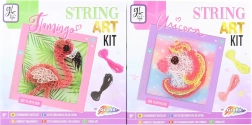 Ta ustvarjalna garnitura ti omogoča ustvariti lastne slike z vrvjo, ki bodo odličen okras za tvojo sobo. Paket vsebuje penasto ploščo, okvir, žebljičke, 4 različne barve prejic in dodatke, potrebne za izdelavo slik.