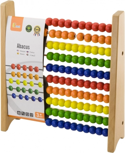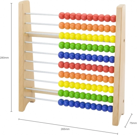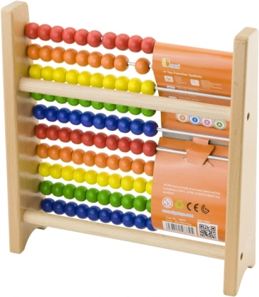 To kakovostno leseno računalo je idealen pripomoček za prve korake v matematiki. Zahvaljujoč izrazitim barvam in gladko drsečim kroglicam si otroci zlahka osvojijo štetje do deset, preprosto seštevanje in odštevanje ter razvrščanje po barvah.