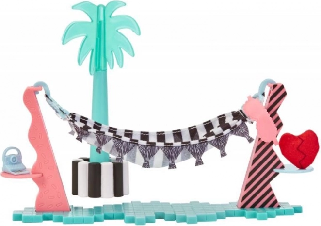 Ustvari počitniški chill-out kotiček s palmo, visečo mrežo in napitkom – idealno za počitek tvoje punčke.
