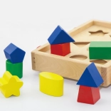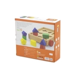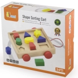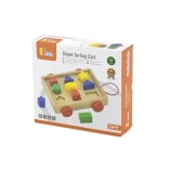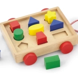 Lesena vstavljanka - voziček ponuja otrokom zabavno in poučno pot do izboljšanja fine motorike. Del seta je voziček velikosti 24,5 x 22 x 7 cm ter 9 barvitih kock različnih oblik, ki jih je treba pravilno vstaviti. Ta voziček otroke spodbuja k igri, medtem ko se učijo prepoznavati oblike.