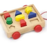 Glavne prednosti igrače vključujejo ne le izobraževalni vidik, temveč tudi njeno večnamenskost. Otroci lahko voziček zaradi vrvice zlahka vlečejo za seboj, kar njihovim igram doda zabaven element.