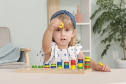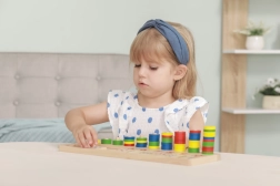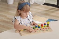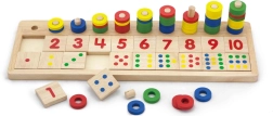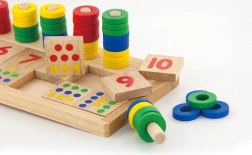 S pomočjo barvnih obročkov in oštevilčenih ploščic lahko otroci razvijajo svoje matematične spretnosti in numerično razmišljanje.