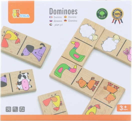 Očarljivo leseno domino z motivi domačih živalic ponuja ure zabave in učenja za vašega malčka. Vsak košček prinaša barvite ilustracije, ki pomagajo razvijati zmožnost prepoznavanja vzorcev in fino motoriko. Zahvaljujoč praktični škatlici je shranjevanje in prenašanje igre enostavno in priročno.