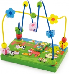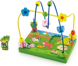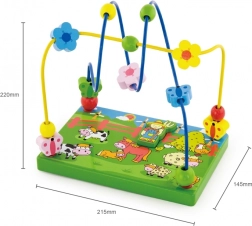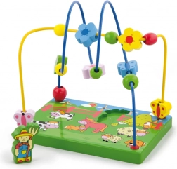 Odkrijte barvit leseni kroglični labirint s kmečko tematiko, ki otroke navduši z gibanjem kroglic po kovinskih žičkah in z igro z magnetno figurico. Stabilna lesena osnova z ilustracijami s kmetije podpira domišljijo ter hkrati uči otroke zbranosti in koordinacije gibov.
