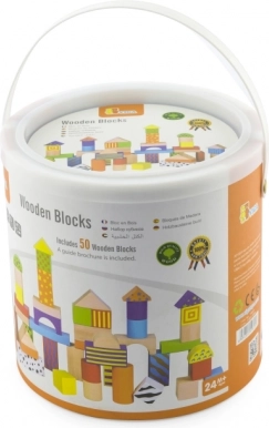Ta vsestranski set lesenih kock ponuja otrokom neskončne možnosti za gradnjo stolpov, mostov in hišk. Deli so prijetni na dotik, imajo gladke robove in so barvno lakirani za privlačno in varno igro. Praktično vedro z ročajem olajša shranjevanje in prenašanje.