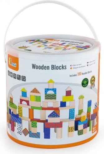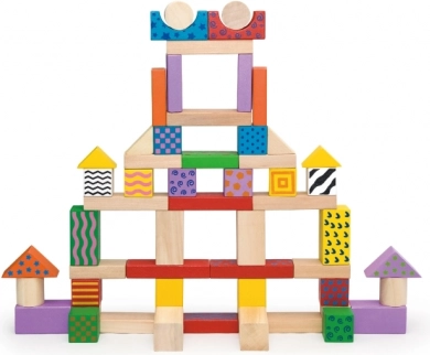 Ta brezčasni komplet lesenih kock otrokom prinaša ure smiselne zabave. S 100 pisanimi kosi različnih oblik lahko gradijo stolpe, hiše in celo mesteca ter pri tem razvijajo koordinacijo oko–roka, logično razmišljanje in potrpežljivost.