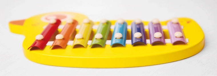 Je idealen za prve glasbene korake, razvija slušno zaznavanje ter uči osnove ritma in barv. Robustna lesena konstrukcija zagotavlja varno igro vsak dan.