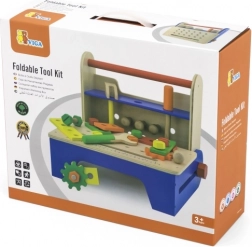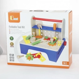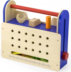 Ta leseni vijačni set je idealna izbira za prve mojstrske poskuse. Robustna lesena škatla se v hipu spremeni v stabilno delovno mizo, na kateri lahko otroci privijajo, sestavljajo in gradijo lastne stvaritve. Barvni deli spodbujajo raziskovanje in podpirajo koordinacijo oko–roka.