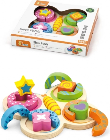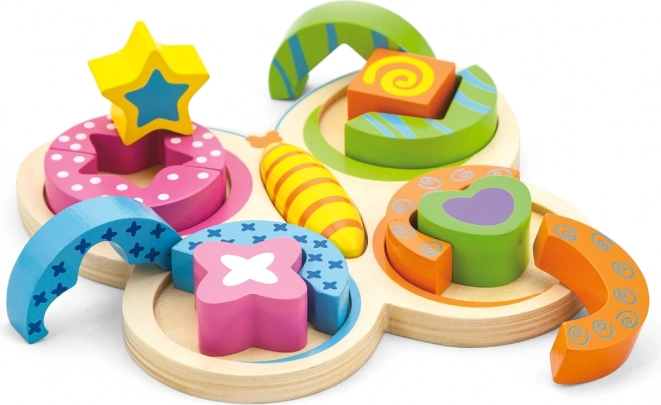 Prisrčne lesene puzzle v obliki metuljčka otrokom od 2 let prinašajo ure zabave in učenja. Zahvaljujoč živim barvam, velikim varnim kosom in izrezkanim robovom deli odlično ostanejo na mestu. Igrača spodbuja fino motoriko, oko–roka koordinacijo in ustvarjalnost.