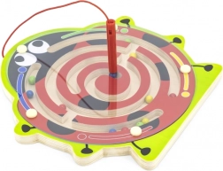 Ta kakovosten leseni magnetni labirint pikapolonica otrokom ponuja barvit svet odkrivanja. S priloženim magnetnim pisalom premikajo kroglice po premišljeno zasnovanih poteh, s čimer naravno krepijo prijem, vadijo koordinacijo oko–roka in izboljšujejo koncentracijo. Trdna lesena konstrukcija in zaprt dizajn zagotavljata varno igro brez prostih delov.