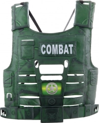 Ta otroški vojaški komplet je zasnovan za varno in ustvarjalno igro. Lahka plastična čelada in jopič z elastikami se zlahka namestita in dobro držita, tako da se lahko otroci popolnoma potopijo v svoje pustolovske zgodbe. Puška in nabojniki dopolnjujejo avtentičen videz, pri čemer je vse prilagojeno otroškim rokam.