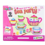 Ustvarite edinstven otroški čajni set z lastnimi barvami! Set vsebuje vse, kar potrebujete za ustvarjanje – keramični čajnik, skodelice, mlečnik, posodico za sladkor ter barve s čopičem. Idealno za razvoj ustvarjalnosti in fine motorike. Enostavna uporaba, popoln set, primerno od 3 let.