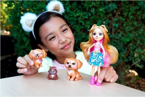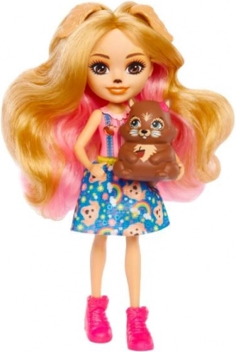 Enchantimals punčka Gerika Golden Retriever s kužki in veverico
