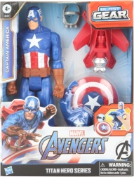 Ta 30-centimetrska figurica lika Captain America v pravilnem merilu iz serije Titan Hero ima klasičen dizajn in je priložena z dodatki, navdihnjenimi po tem liku, ki jih je mogoče pritrditi na roko in hrbet figurice, vključno z izstreljevalnikom in 2 izstrelkoma. Dodatki so združljivi z vsemi figuricami iz serije Titan Hero Blast Gear in Titan Hero Power FX. Figurice Titan Hero Blast Gear so prav tako združljive s paketi in izstreljevalniki iz serije Titan Hero Power FX za zvočne učinke. (Na voljo s figuricami Titan Hero Power FX. Prodaja se ločeno.) Starost 4+