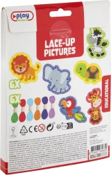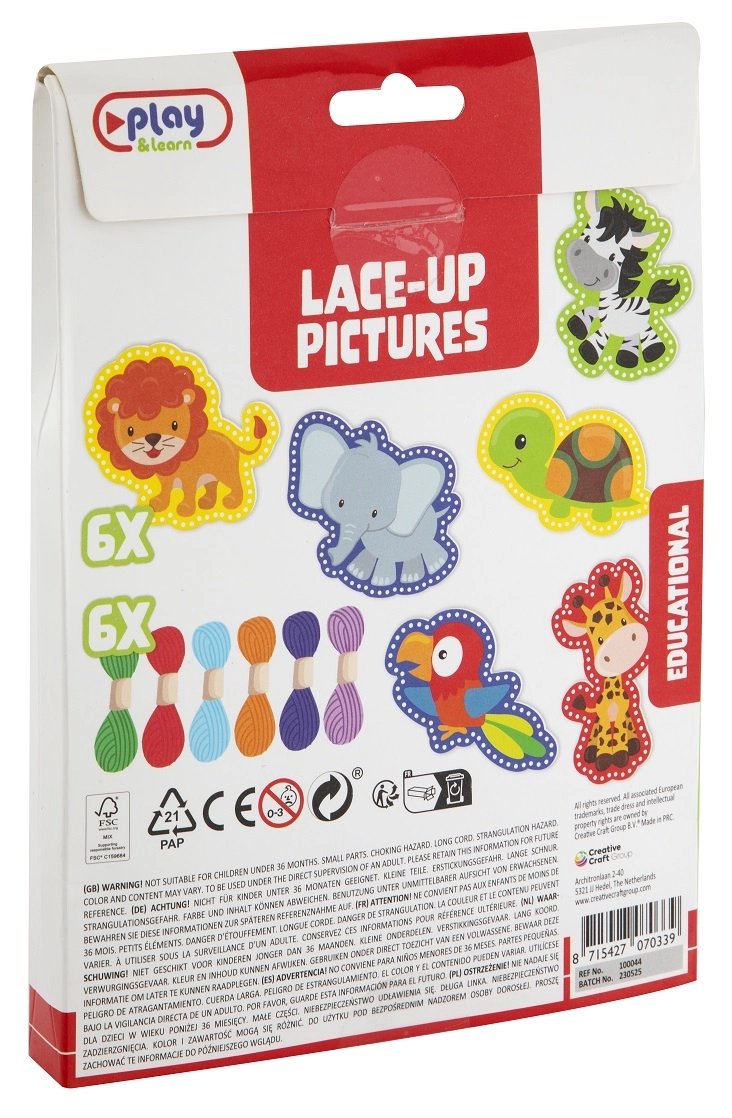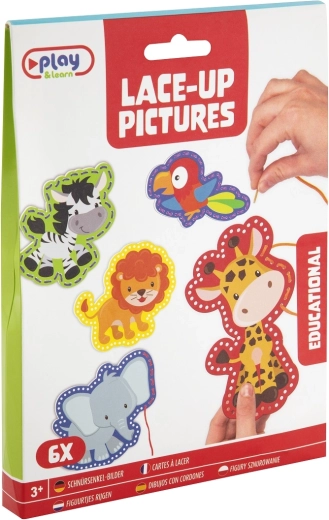 Vsaka izmed 6 trdnih slik ima pripravljene luknjice za enostavno prepletanje, zato je dejavnost primerna tudi za začetnike. Del paketa je 6 vezalk v različnih barvah – izberete sliko, prepletate in opazujete, kako motiv oživi.