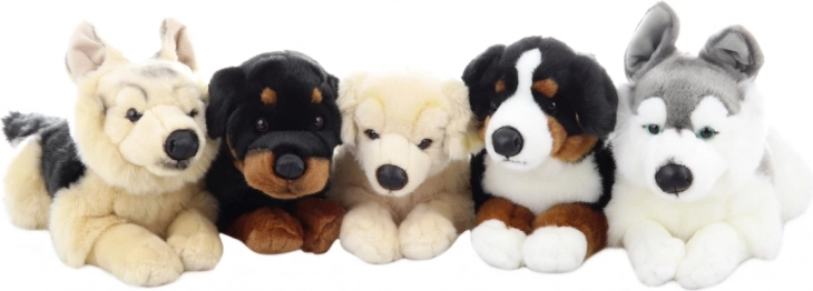 Prisrčen plišasti pes velikosti 43 cm bo razveselil tako malčke kot odrasle. Ima mehak površinski material in polnilo iz recikliranih PET plastenk, zato je nežen na dotik in hkrati prijazen do narave. Primeren že od starosti 0+.
