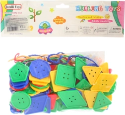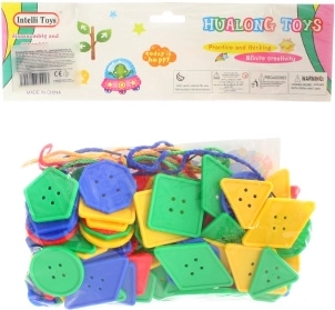 Nizalne oblike in gumbi so idealne za malčke, ki želijo izboljšati svoje spretnosti na področju fine motorike. Igrača vsebuje različne oblike in barve, kar otrokom pomaga pri učenju prepoznavanja oblik in barv. Del pakiranja so tudi barvite vrvice, ki omogočajo enostavno nizanje. Mere posameznih oblik so idealno zasnovane za majhne otroške roke.