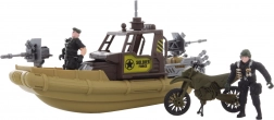 Podajte se v akcijo s celovitim vojaškim setom, ki bo razveselil vse male ljubitelje pustolovščin. Velik čoln in hiter motor omogočata ustvarjanje napetih misij in prizorov, medtem ko dve podrobno izdelani figurici vojakov igri dodata pristnost. Igrača je zasnovana tako, da spodbuja otrokovo domišljijo in razvoj fine motorike.