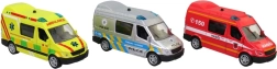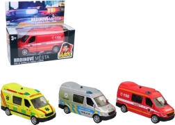 Izbirajte med priljubljenimi različicami – rešilno vozilo, policija ali gasilci. Odlično za samostojno igro ali razširitev otroške zbirke avtomobilčkov. Zaradi kompaktne velikosti je idealen za na pot in za otroško sobo.
