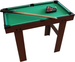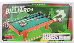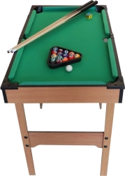 Kompaktna otroška biljardna miza v kakovostni leseni izvedbi prinaša odlično zabavo za male in velike igralce. Del pakiranja so 2 palici, 16 biljardnih krogel in celoten pribor. Zaradi svojih mer je idealna za otroško sobo in za prvo spoznavanje s pravili igre.