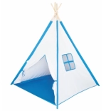 Šotor teepee velikosti približno 120 x 120 x 150 cm. Šotor lahko uporabljate doma v otroški sobi ali poleti zunaj na vrtu. Otroci se bodo ob igranju in skrivanju izvrstno zabavali. Dimenzije pakiranja približno 10 x 10 x 90 cm. Starost 3+ Barva: rožnata/modra