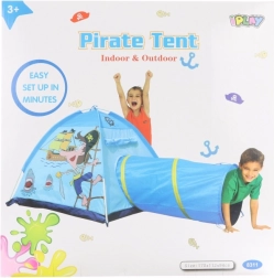 Ustvarite otrokom lasten piratski kotiček s šotorom in tunelom, ki spodbuja domišljijo, gibanje in skupno igro. Barvit piratski motiv navduši na prvi pogled, tunel pa razširi možnosti igre – od plazenja do skrivnih skrivališč.