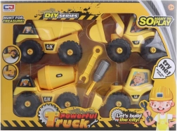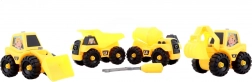 Zgradite svoje gradbišče z barvitim kompletom vozil na vijake. Otroci zlahka sestavijo in razstavijo nakladalnik, bager, mešalnik in prekucnik s priloženim izvijačem in ključem. Igra spodbuja ustvarjalnost, koordinacijske spretnosti in uči potrpežljivosti na zabaven način.