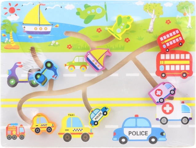 Odkrijte zabaven in izobraževalen leseni labirint s prevoznimi sredstvi, ki razvija fino motoriko, logično razmišljanje in koordinacijo oko–roka. Idealna didaktična igrača za otroke od 3 let z varno zaobljenimi robovi in kakovostno izdelavo.