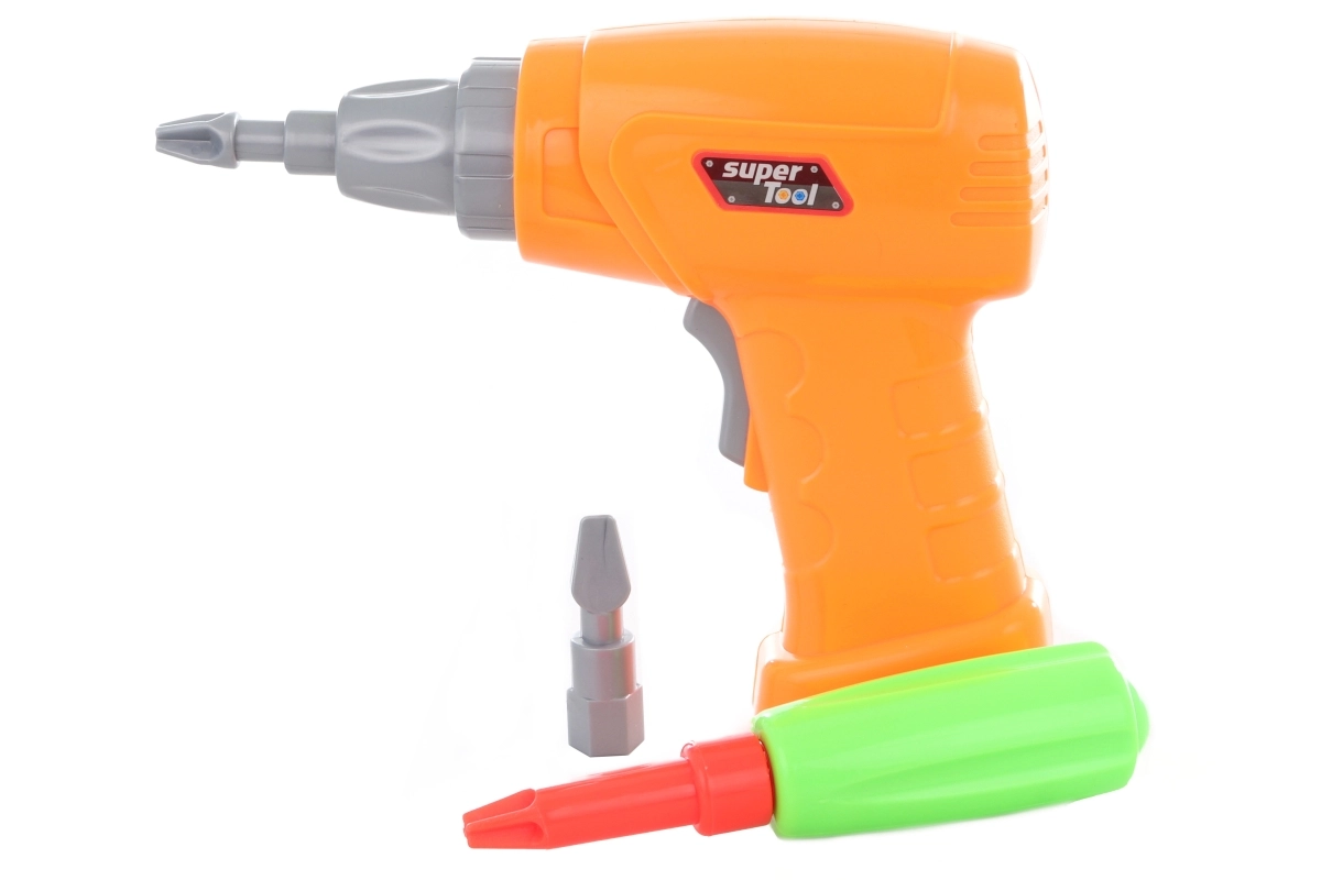 Akcijsko privijanje z oranžnim vrtalnikom in izmenljivimi nastavki razvija koordinacijo in krepi prste. Napajanje 2× AA bateriji (nista priloženi).