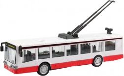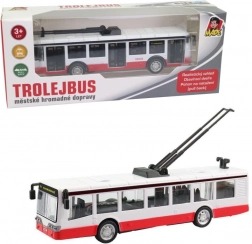 Odkrijte podrobno izdelan trolejbus v tradicionalni rdeče-belo-črni kombinaciji, kot jo poznamo iz nekaterih čeških mest. Model je izdelan iz kakovostne kovine, dopolnjene s plastičnimi elementi, zato je hkrati trden in lahek za otroško roko. Zahvaljujoč navijanju za povratno vožnjo se trolejbus po spustu sam zapelje in ponudi veliko zabave.