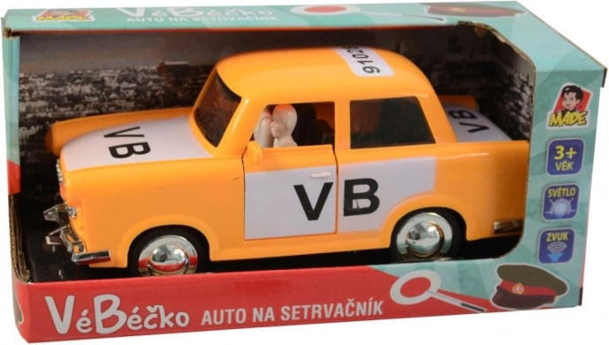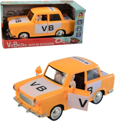 Vrnite se v čase klasičnih službenih vozil z retro avtom VÉBÉčko v rumenem dizajnu Javne varnosti. Zahvaljujoč vztrajniku je dovolj, da avto potisnete, pa se zapelje naprej; ob pritisku na gumb se oglasi realističen zvok motorja. Odpirajoča se vrata poskrbijo za avtentičnost igre in spodbujajo otroško domišljijo.