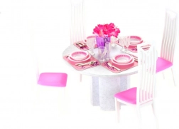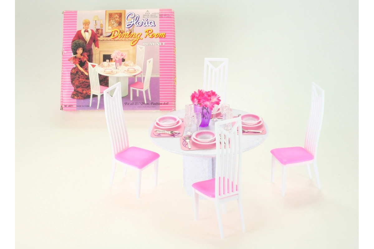 Ustvarite popolno pogrnjeno mizo za punčke. Jedilni set Glorie prinaša vse, kar otroci potrebujejo za organizacijo družinske večerje ali slavnostne pogostitve – od pogrinjka do udobnega sedenja. Kakovostna plastična izdelava zagotavlja enostavno vzdrževanje in dolgo življenjsko dobo.