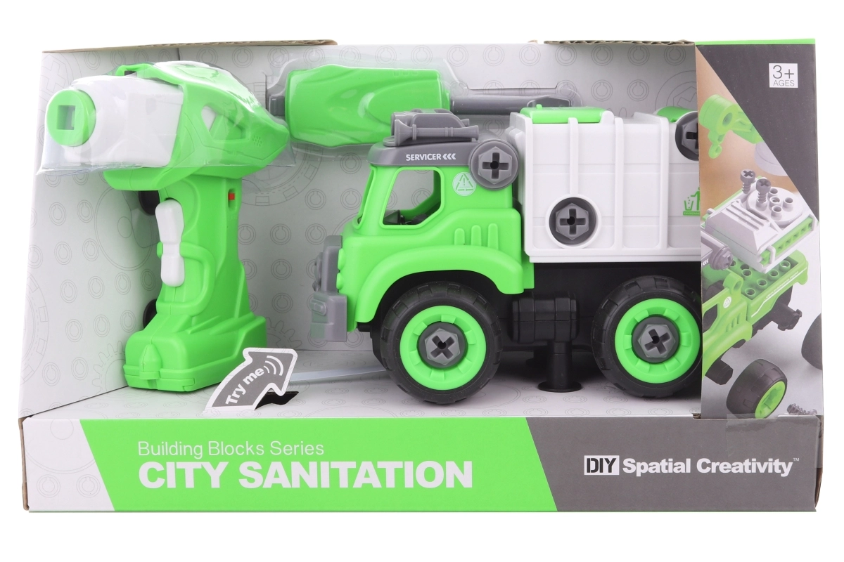 Odkrijte domiselni privijalni smetarski avto, ki združuje kreativni set za sestavljanje in RC igračo. Otroci si avto sami sestavijo, vstavijo motorček iz vrtalnika v karoserijo in se nato odpeljejo z enostavnim upravljanjem naprej/nazaj. Realistični zvočni učinki spodbujajo igro poklicev in razvijajo domišljijo.