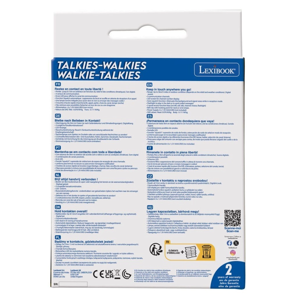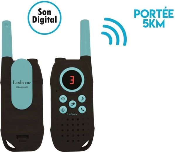 Ostanite v stiku pri igri, na izletih in pri kampiranju z digitalnimi otroškimi radijskimi postajami s signalom do 5 km, 3 komunikacijskimi kanali in uporabniku prijaznimi gumbi. Ponašajo se z digitalnim zvokom, LED-zaslonom, LED-svetilko in funkcijo squelch za zmanjšanje šuma. V paketu sta 2 enoti z odstranljivim sponkom za pas.