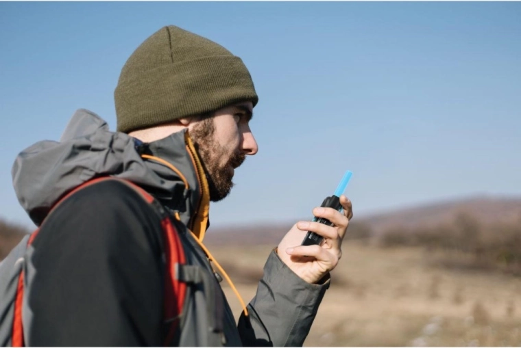 Upravljanje je preprosto in pregledno: gumb On/Off, gumb za govor, klicni ton, preklapljanje kanalov in LED-svetilka za igro v temi ali pošiljanje svetlobnih signalov. Funkcija squelch filtrira neželen šum, digitalni zvok zagotavlja jasnost, LED-zaslon pa jasno prikaže izbrani kanal. Odstranljiv sponka za pas olajša nošenje.