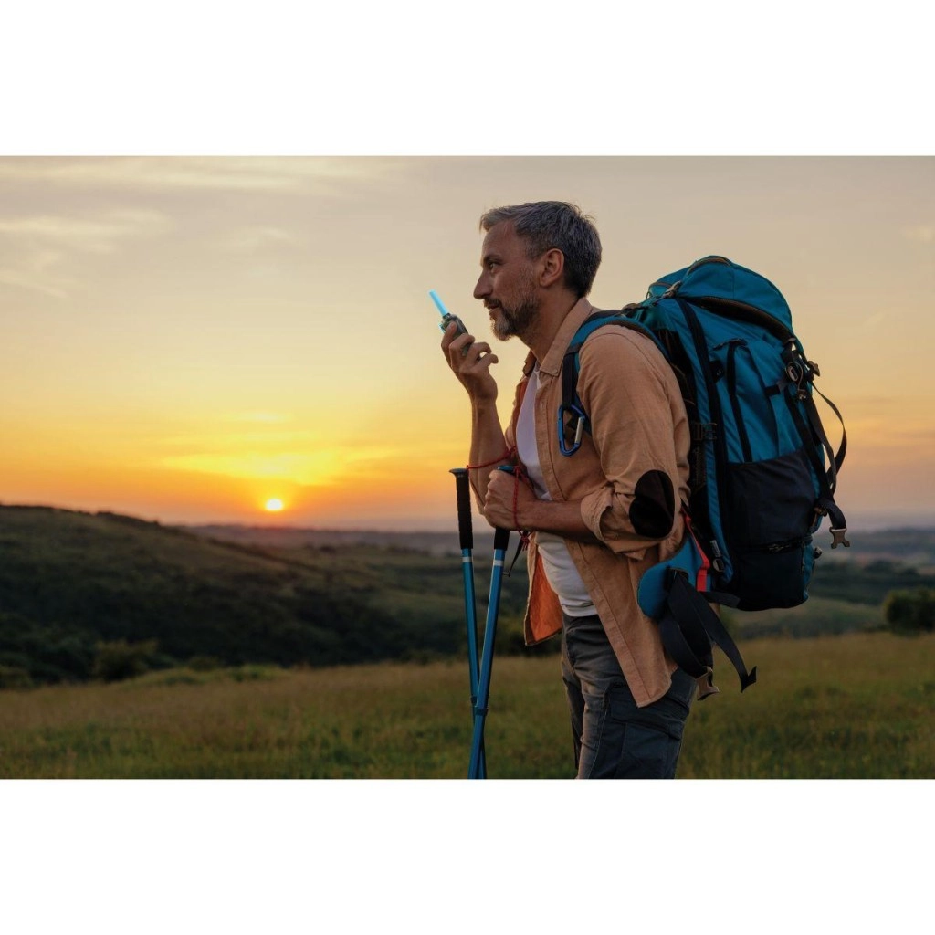 Spremenite komunikacijo v zabavo in večjo varnost. Te digitalne radijske postaje olajšajo dogovarjanje otrokom in odraslim pri igri, pohodništvu ali kampiranju, tudi tam, kjer ni mobilnega signala. Zahvaljujoč dosegu do 5 km (odvisno od terena in vremena) ter 3 kanalom se zlahka povežete med več enotami – le nastavite enak kanal.