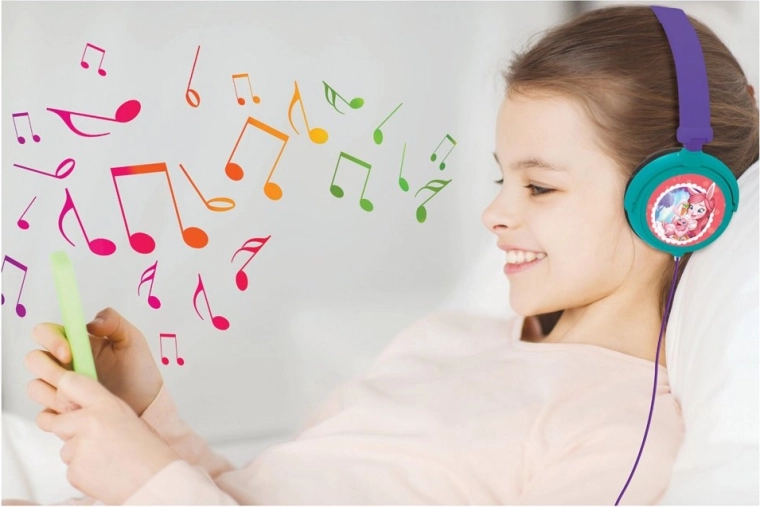Prenosne zložljive slušalke za otroke. Zelo majhna teža. Maksimalna glasnost je 85 dB za zaščito otroških ušes. Nastavljiva velikost.