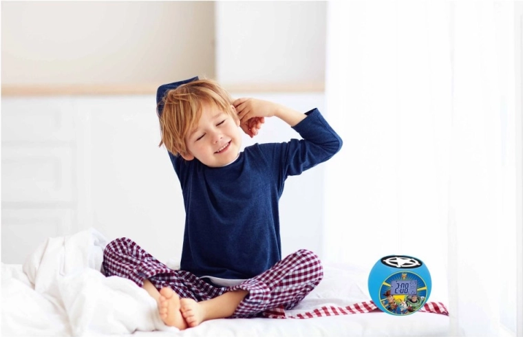 Projektor na strop projicira tematski motiv TOY STORY in se samodejno izklopi po 2 minutah ali po pritisku na zgornji del budilke.
