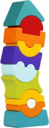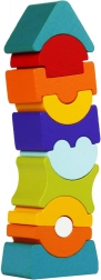 Zaobljeni deli omogočajo gradnjo stolpa naravnost ali z nagibom v stran. Otroci pri vsakem poskusu urijo potrpežljivost, koordinacijo in prostorsko predstavo.