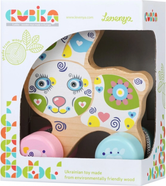 Vlečni zajček znamke Cubika je idealen sopotnik na poti za malčke, izdelan iz ekološkega lesa in varnih barv.
