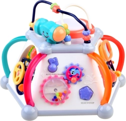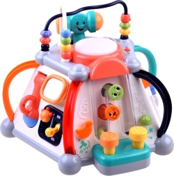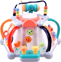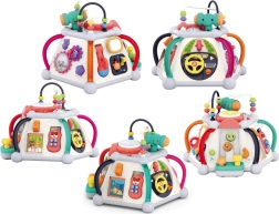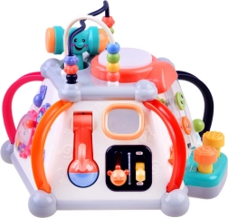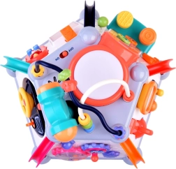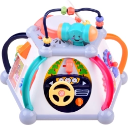 Odkrijte zabavo in učenje v enem z interaktivno večkocko znamke HOLA. Ponuja 5 interaktivnih stranic in zgornjo ploščo, svetlobne in zvočne učinke, labirinte z kroglicami, mikrofon, volan s hupo ter predvajanje melodij. Spodbuja fino motoriko, čutno zaznavanje in koordinacijo oko–roka – idealno za dolge ure pametne zabave.